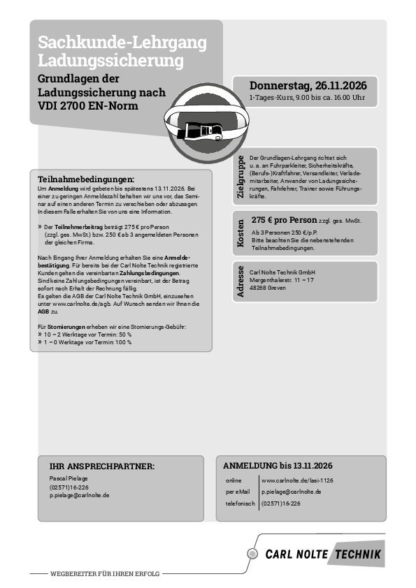 Sachkunde-Lehrgang Ladungssicherung November 2026