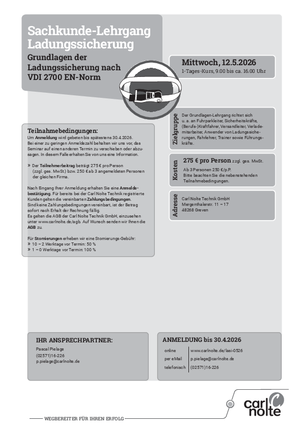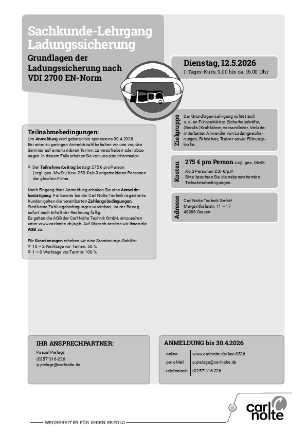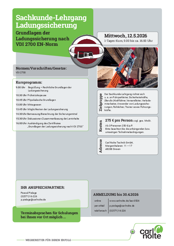 Sachkunde-Lehrgang Ladungssicherung 12. Mai 2026