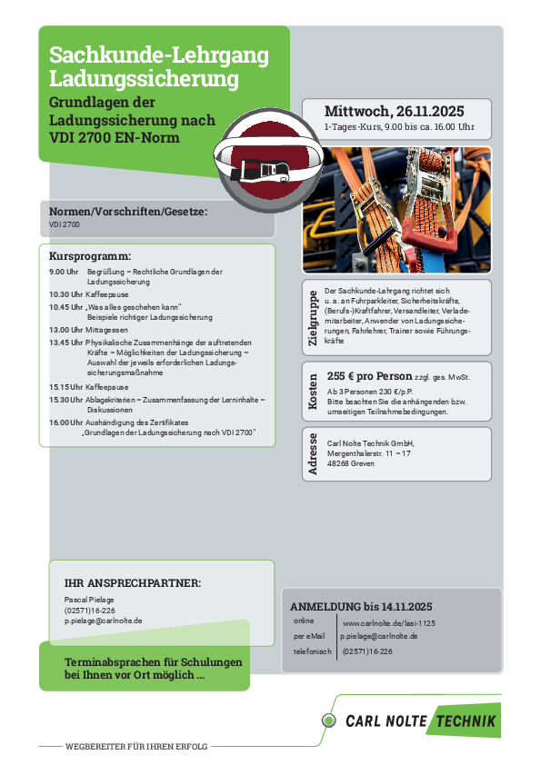 Sachkunde-Lehrgang Ladungssicherung November 2025